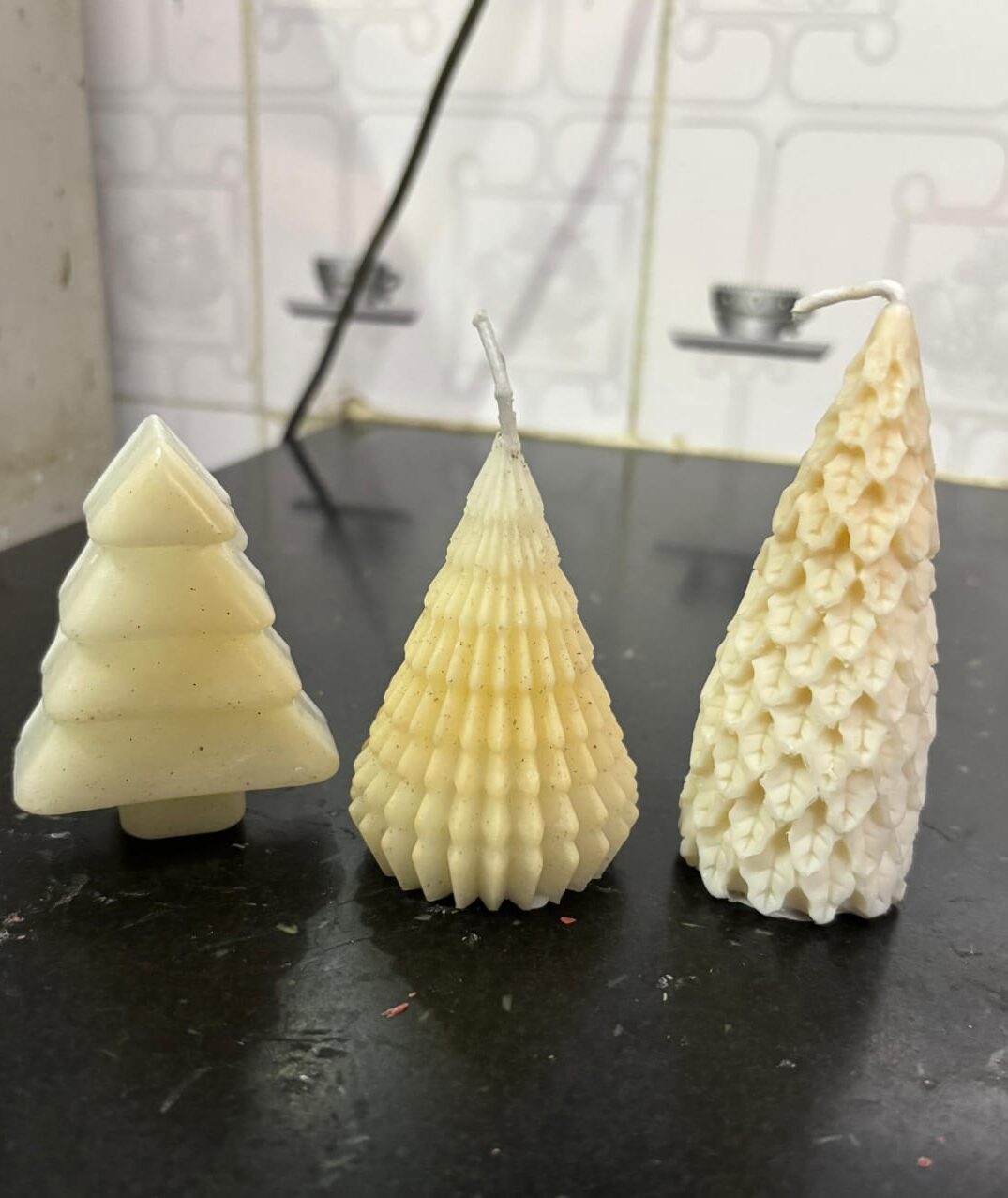 This premium set includes three beautifully designed Christmas tree candles—each with its own artistic style. From the smooth geometric tree to the ribbed cone and delicately textured foliage design, every piece adds a touch of sophistication to your festive arrangements. Crafted using high-quality wax, they offer a clean burn and a refined decorative look.
